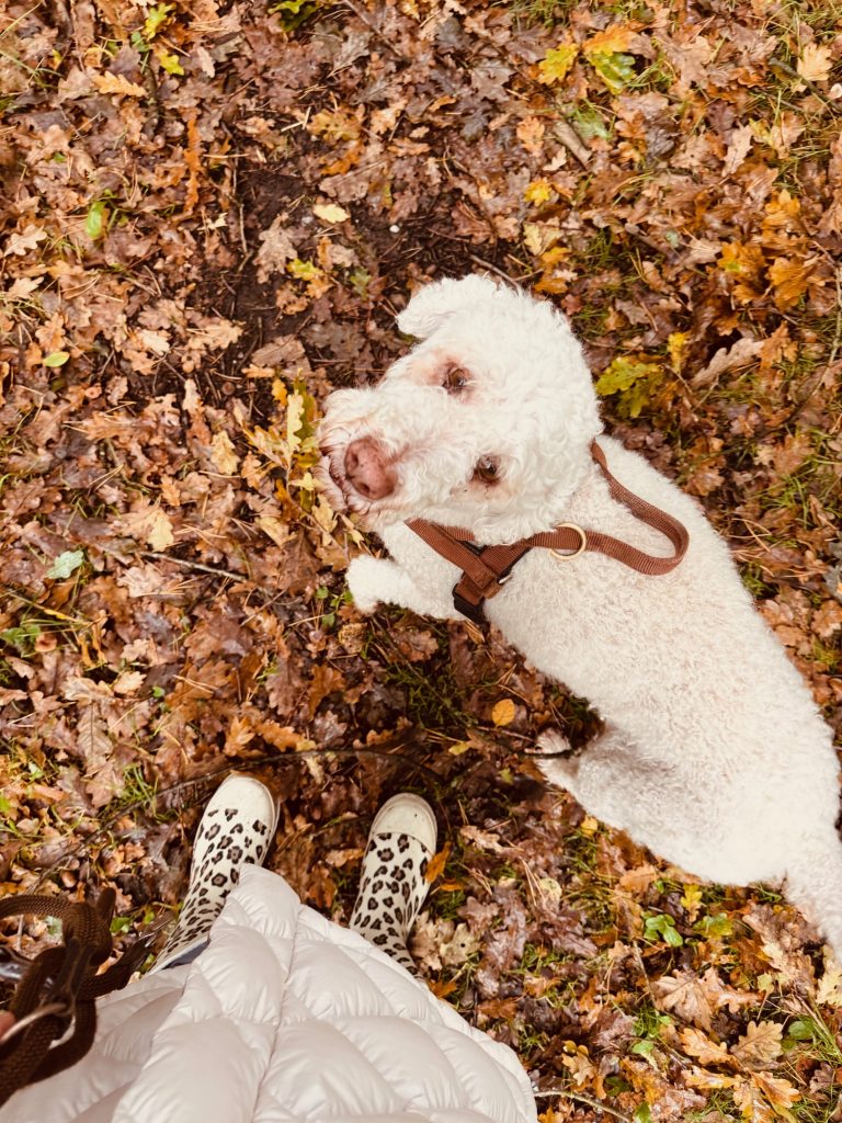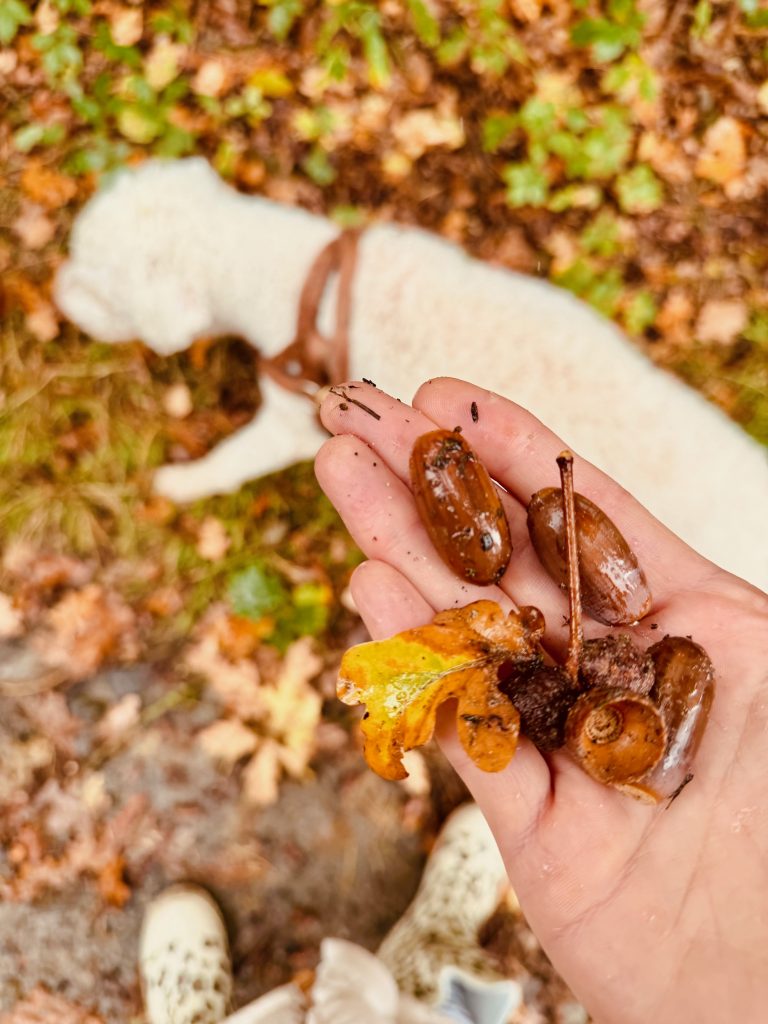Ich streife mit meinem treuen Hund Rudi durch den Wald. Es duftet moosig und sowohl die bunte Blätterdecke, wie auch der Matsch des feuchten Waldbodens kleben an meinen Regenstiefeln. Ich tauche ein die die Natur, in den Herbst, in den Moment, in mir.
